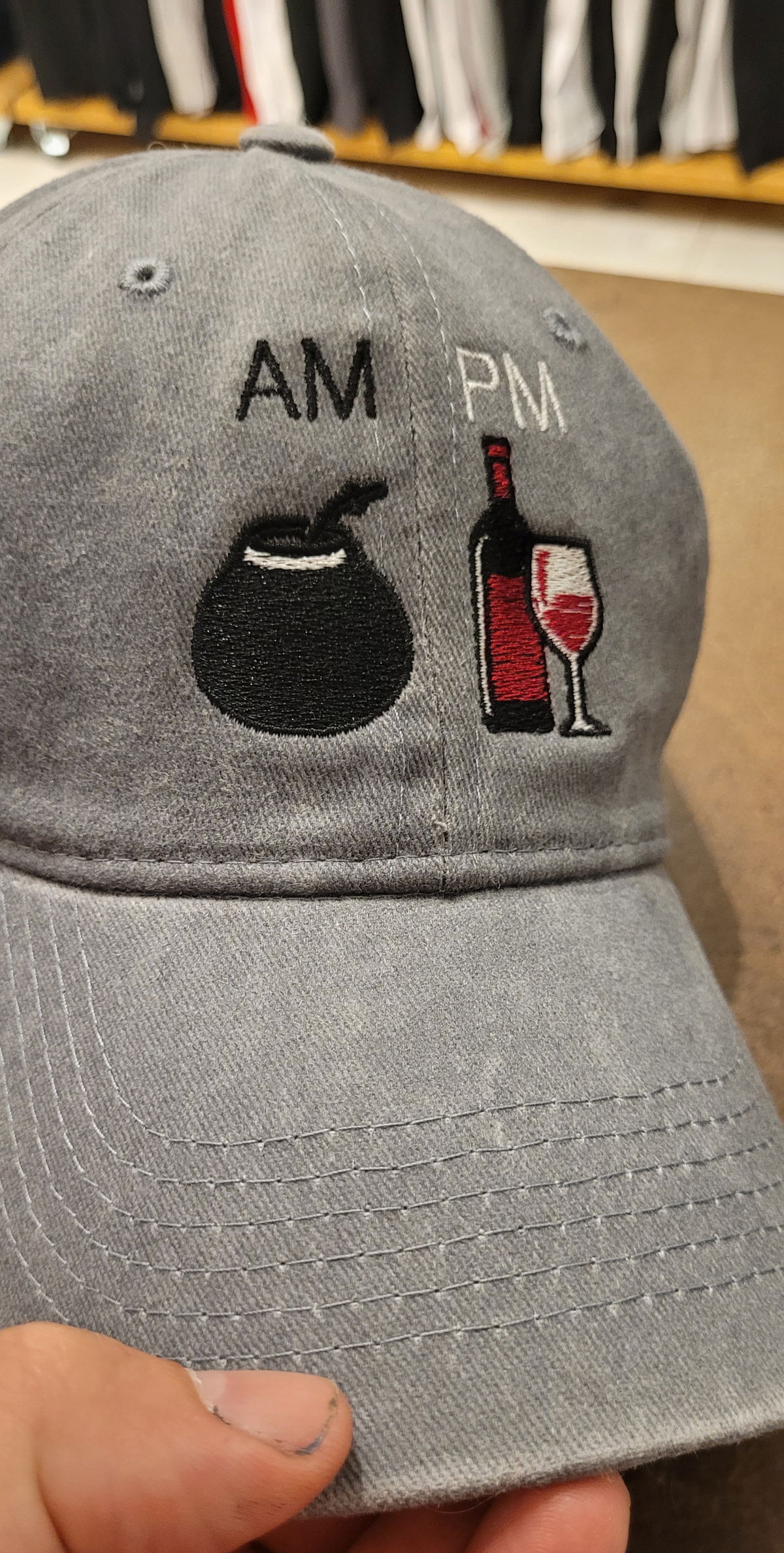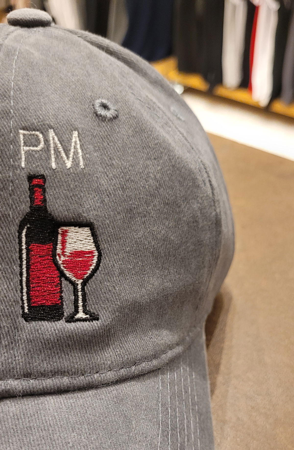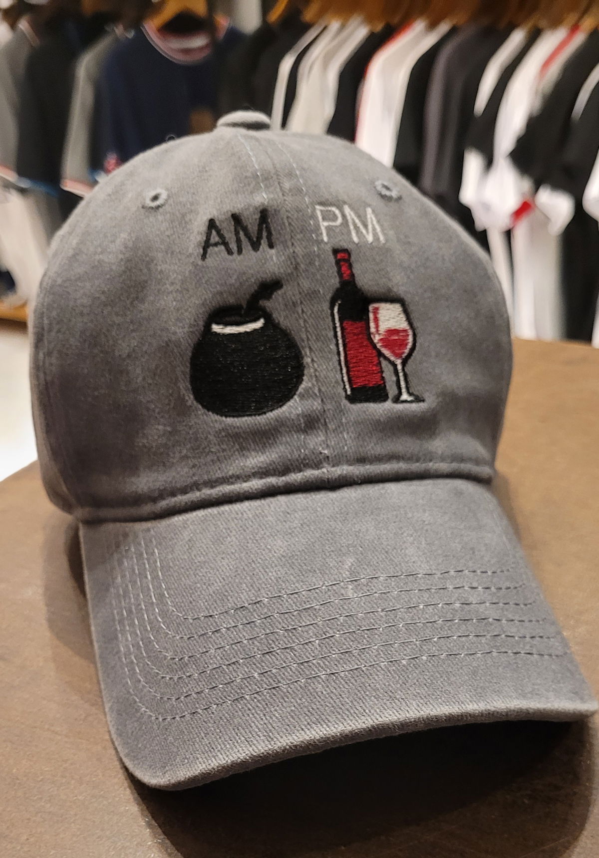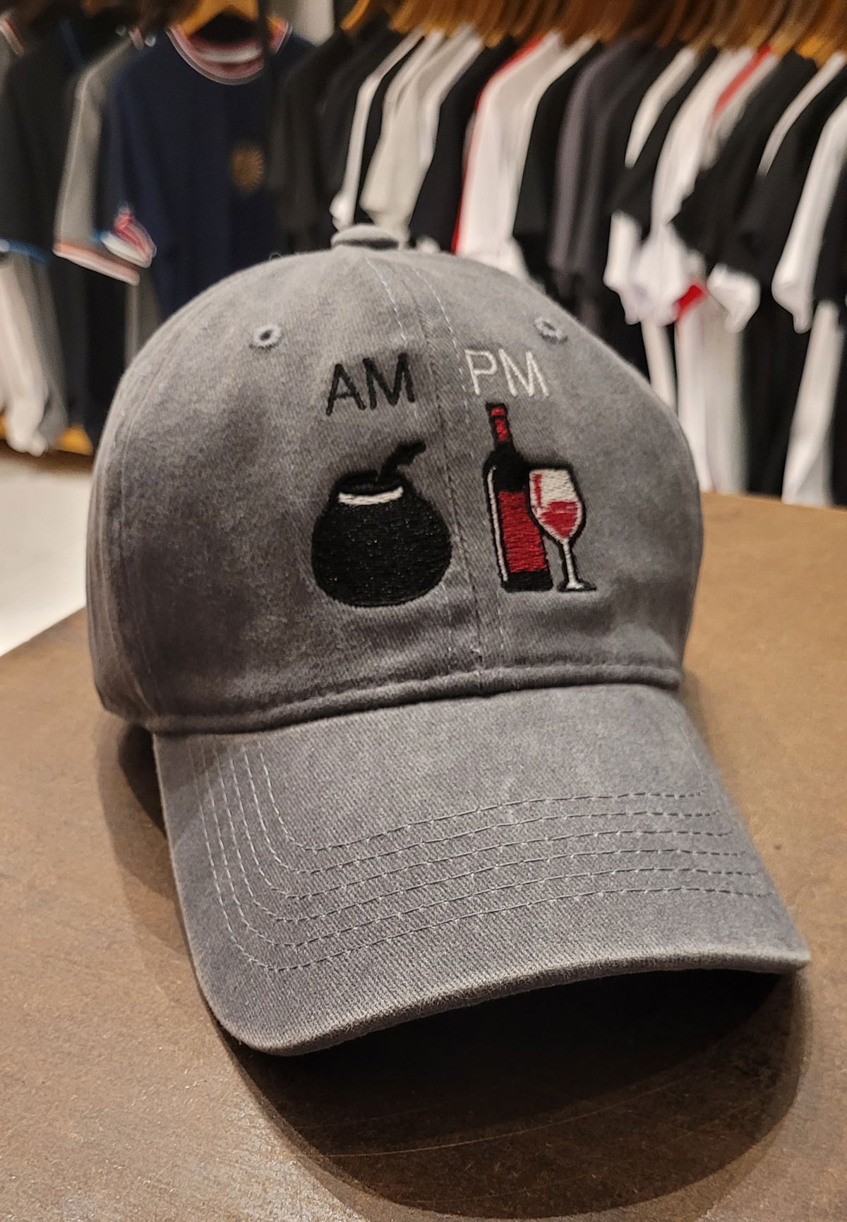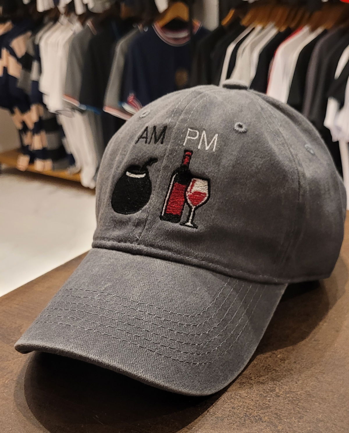 Gorra gabardina gris gastado AM PM mate vino malbec
